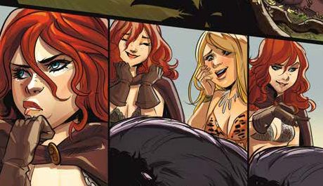 If the repetitive nature of the stories isn’t enough to scare off the reader, a complete lack of understanding of the characters by the writers might do the trick. I nearly put the book down when Red Sonja (a warrior from the ‘Hyborian’ age [which takes place before the beginning of recorded history according to creator Robert E. Howard]) goes back further in time to team up with Jungle Girl and Red Sonja has to explain quips and puns to Jungle Girl. Where do I begin with what’s wrong with this?!